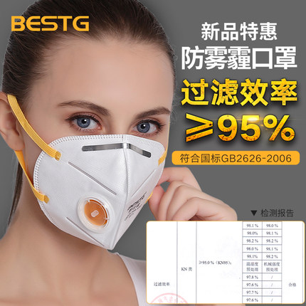 BESTG倍仕佳9522V 防尘防雾霾防颗粒物PM2.5 KN95带阀头带式口罩